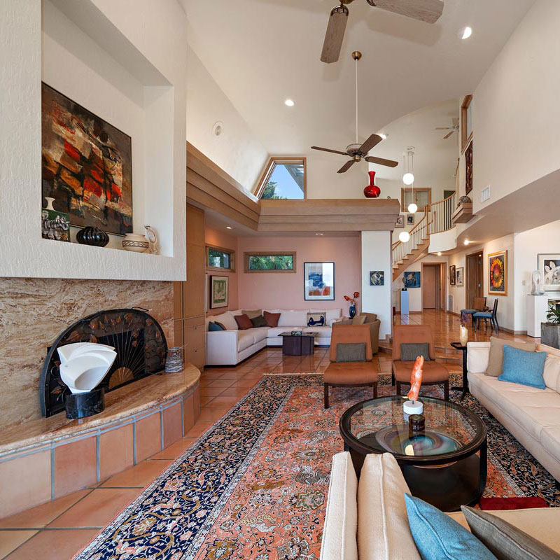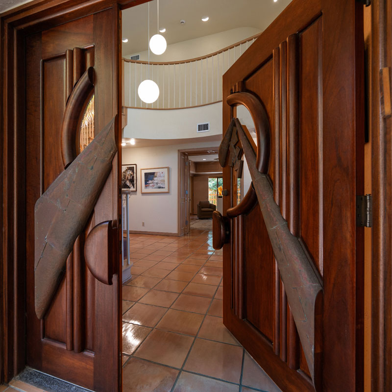 The architect, the late Sanford Goldman, was a 1959 Taliesin fellow of Frank Lloyd Wright. A photograph of the two men working together is prominently placed just inside the front door—a testament to this home's authentic lineage.