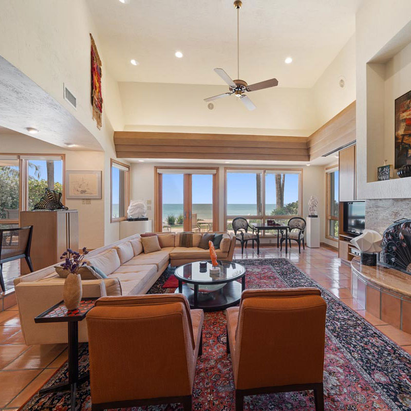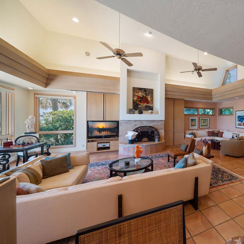 This executive home is designed by a Frank Lloyd Wright Taliesin Fellow and is built on solid ground, well-above sea level. Don’t miss the breathtaking, west-facing sunsets at this 3 bedroom/4 bath architectural gem. Sophisticated and stunning!
